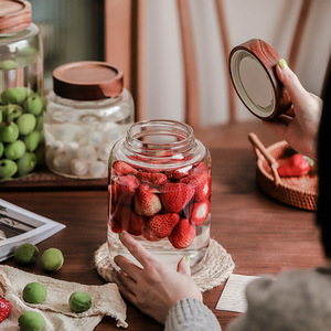 直径13cm、多仕様ネジ付きガラス密封瓶、木製蓋、青梅ライチワインボトル、みかんの皮と穀物保存瓶