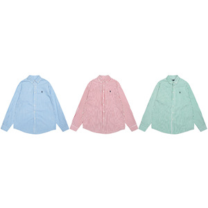 RL スポットラフストライプシャツ男性と女性用、RL ポニーロゴ刺繍ファッション多用途ポロカラーシャツ多用途