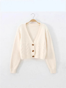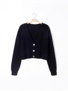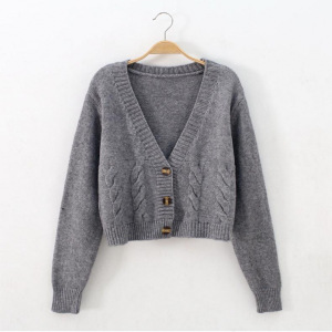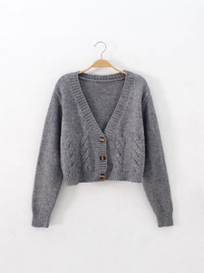 超短款高腰显瘦胶花毛衣女2025秋装新款单排扣针织开衫麻花小外套