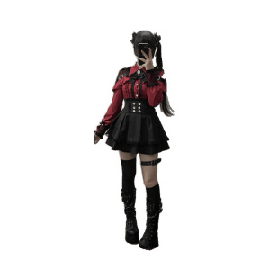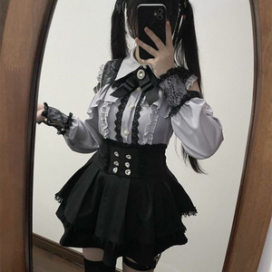 Sweetheart Encounter カレッジスタイル日本製中空スリムシャツトップ+ウエストレーススカートスーツ