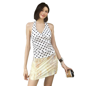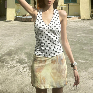 クロスボーダーヨーロッパとアメリカンスタイルの2025新しい夏の女性のファッション気質水玉模様のホルターネックVネック新鮮で甘いベスト