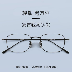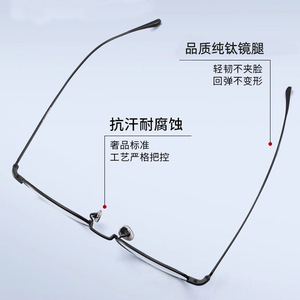 ビジネスブラックフレームメガネメンズ超軽量純チタン小フレームメガネフレーム近視はオンラインで調整可能、ハイエンドスクエアフレーム付き