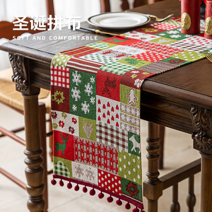 クロスボーダーの新しいサンタクローステーブルクロス雰囲気装飾模造綿とリネンの6人用テーブルストリップクロスクリスマステーブルフラグ