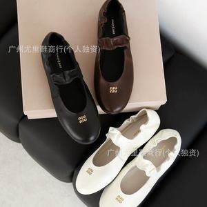 2025 新しい miu ソフトレザープリーツバレエシューズ女性のニッチ多用途ラウンドトゥメリージェーンフラットストラップ