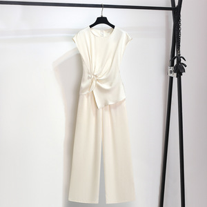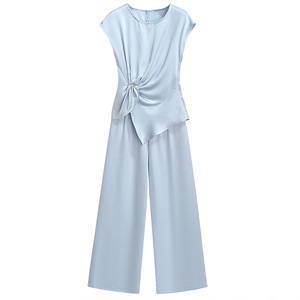 法式小资缎面醋酸无袖上衣阔腿长裤子两件套女2025夏装新款高级感