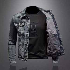 牛仔外套男士春秋季美式复古做旧潮流修身机车夹克工装休闲上衣男