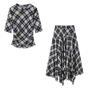 在庫あり 2025年初秋新作 ラウンドネック スリムフィット ウエストチェック柄プリント半袖Tシャツ MBE3TOP003