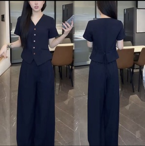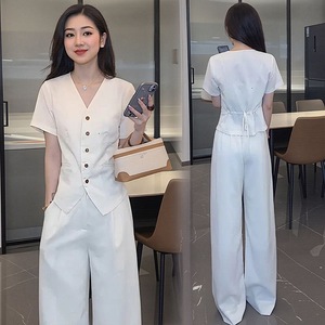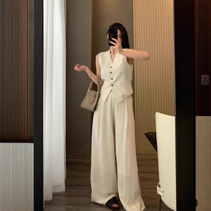 テンセルリネンスーツノースリーブハイエンド2025夏新作オールドマネースタイルファッションベストワイドレッグパンツ2点セット女性用