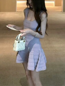 COOLLINE Lin Zixi 冷たい美しさの雰囲気の釣りスタイルラベンダーパープルドレス女性の美白ウエストスカート