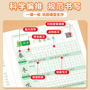 小学校中国語同期練習本 1~3年生用 上下巻 人民教育出版版 1年生ドットマトリックス単語トレースブック
