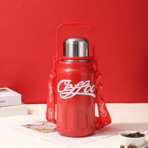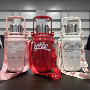 見栄えの良い 316 ステンレス鋼魔法瓶カップ、大容量、ポータブル コーラ カップ、屋外スポーツ ウォーター ボトル、持ち運び用ストラップ付き