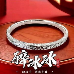 クラッシュアイスシルバーブレスレット、純銀999ソリッドスターリングシルバーブレスレット、女性用三面クラッシュシルバー、親友やガールフレンドへの誕生日プレゼントとして