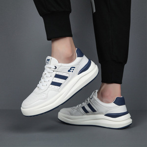 本革スニーカー メンズシューズ 高級感あふれる万能シューズ 秋の新作 通気性のあるカジュアルシューズ 一層牛革 メンズ白靴