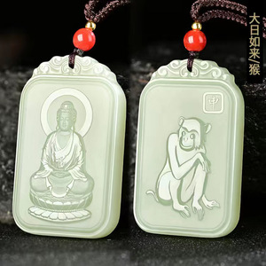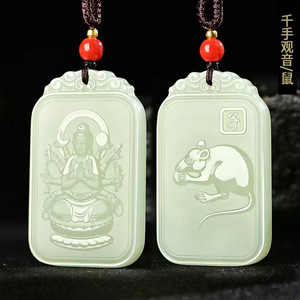 天然本物のホータン翡翠ペンダント十二支守護聖人翡翠ネックレス干支仏翡翠ペンダント男性と女性観音ウサギ