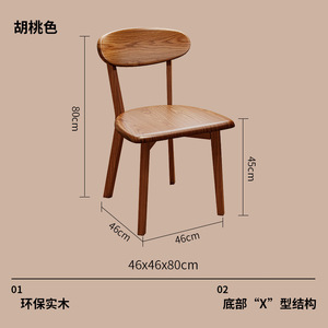 两把装【胡桃色】路易斯椅 FAS级·优质橡胶木/稳固承重