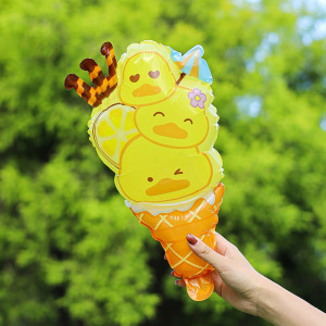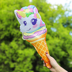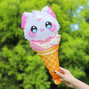 かわいい漫画のアイスクリームの形をした大きな手持ちパーカッションスティック、小さなギフト、子供の誕生日漫画の風船