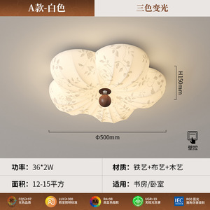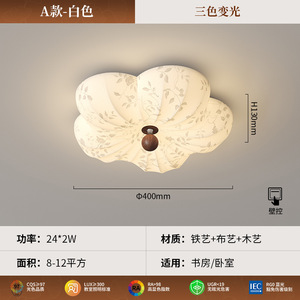 复古卧室灯吸顶灯中古客厅灯圆形布艺胡桃木纹主中山灯具宋代美学