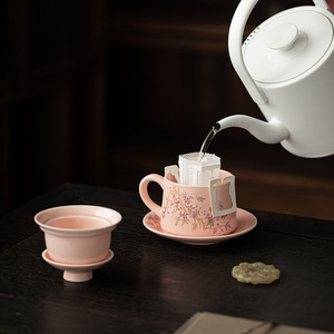 スリーインワンフィルターウォーターカップホームオフィスセラミックコーヒーカップ女性の特別な蓋付きマグカップ茶水分離カップ