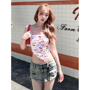 ホットガール漫画プリント三角スカーフ夏の新しい韓国スタイル超見栄えの良いハローキティチューブトップバックレスアウターウェア多用途