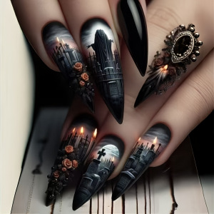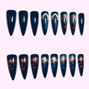 女性がネイルを着用し、取り外し可能なマニキュアを着用するのに適したハロウィンロングアーモンド型墓影キャンドルソウル24個