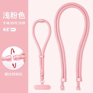 スリーインワン [ライトピンク] クロスボディ/ホルター/リストロープ + ステンレスクリップ