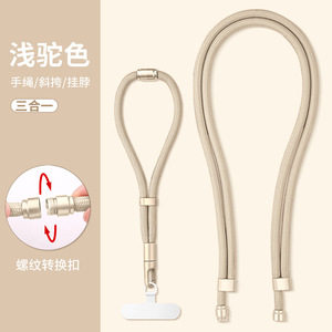 スリーインワン [ベージュ] クロスボディ/ホルター/リストロープ + ステンレスクリップ