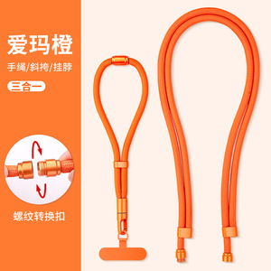 スリーインワン [エマ オレンジ] クロスボディ/ホルター/リストロープ + ステンレスクリップ