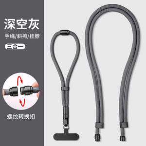 スリーインワン [スペースグレイ] クロスボディ/ホルター/リストロープ + ステンレスクリップ