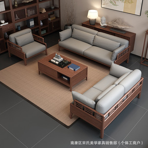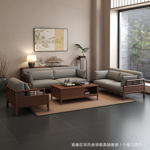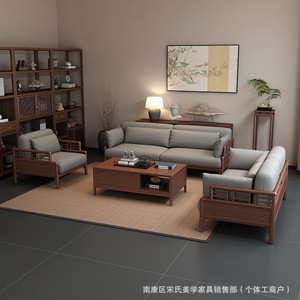 宋氏美学沙发实木沙发南美黑胡桃木禅意轻奢大小户型客厅沙发组合
