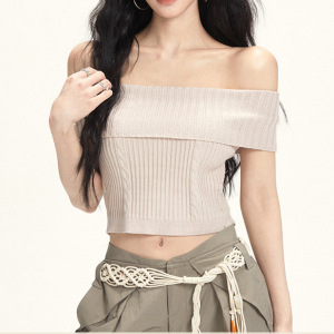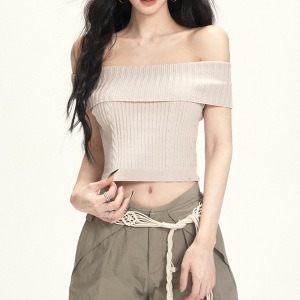 フレンチスタイルワンショルダーラペルニットトップ女性の夏スリムフィットカジュアルワークウェアワイドレッグパンツ2点セット