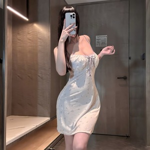 女性用ディープVサスペンダーナイトガウン、胸パッド付き夏用、女性用シンプルパジャマ、純粋な欲望スタイルの花柄ナイトガウン、女性用ホームウェア卸売