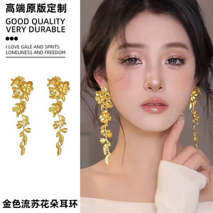 红色花瓣夸张流苏耳环女轻奢高级感长款吊坠气质耳钉复古贵气耳饰