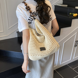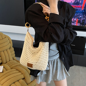 レイジースタイルビーチ織バッグ女性のための 2025 新しいカジュアルホリデークロスボディバケットバッグ大容量コットントートバッグ