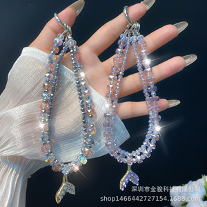 携帯電話チェーンストラップインラインストーン合金マーメイドテール携帯電話チェーンホイールクリスタルダブルチェーンハンドロープ
