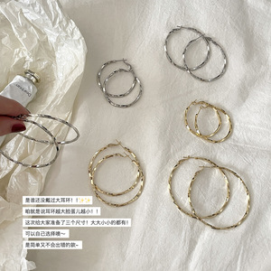 925银针莫比乌斯素圈耳环女轻奢高级感简约时尚设计扭曲大耳圈新