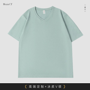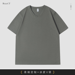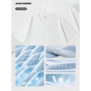 夏ハートネックアイスシルク伸縮性Vネック作業服半袖プリントロゴ企業会社従業員Tシャツ作業服女性用