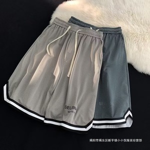 カジュアルパンツメンズ 2025 夏薄型メッシュアイスシルクバスケットボールパンツ通気性スポーツ大きいサイズアメリカンミッドパンツ
