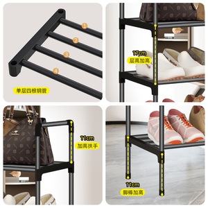 金属组合鞋架子简易家用鞋柜防尘收纳鞋架多层组装门口鞋架加粗款