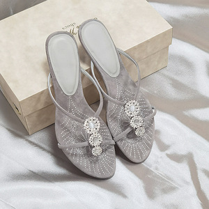 在庫あり】レトロ刺繍ビーチサンダル、おしゃれなアウターローヒールラインストーンストラップサンダル、2025年新スタイル