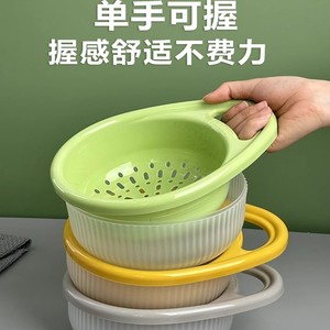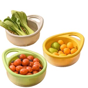 二層ハンドル排水バスケットキッチン家庭用クリエイティブポータブル果物と野菜の排水バスケット果物と野菜の洗濯ボウル