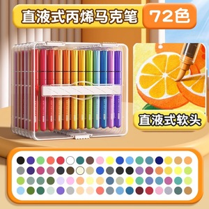 アクリルマーカー ソフトヘッド 小学生向け 美術 72色 水彩ペン 不透明色 重ね塗り可能 絵画ペン ハンドブック用