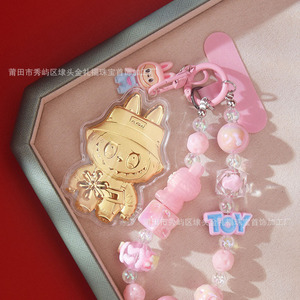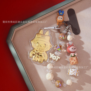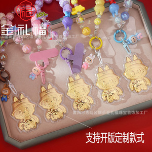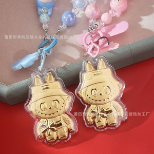999 純金ラブブ携帯電話チェーンゴールドマット漫画ラブブ幸運を引き寄せる友人ペンダントキーホルダー