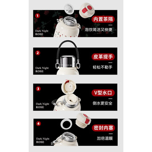 GEMO YI バケツ ジャンシュアン シリーズ 魔法瓶ケトル 900ML クランベリー