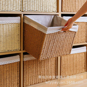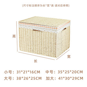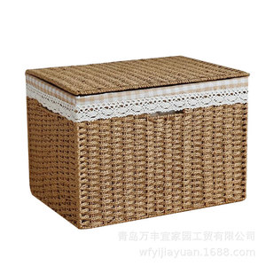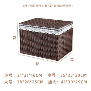 和風収納ボックス家庭用模造籐織物収納バスケットおもちゃスナック衣類雑貨ボックス整理収納ボックス蓋付き