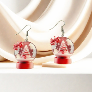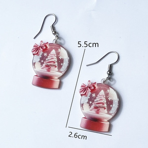 欧美跨境亚克力耳环红色蝴蝶结圣诞节雪球蛋糕树水晶球时尚耳环
