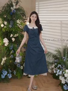 2025 夏の新スタイルフレンチブルースクエアカラードレス女性のウエスト痩身美しいスカート