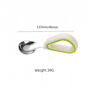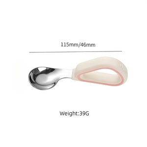 赤ちゃん元宝スプーン、独立して食べるための学習スプーン、316L ステンレス鋼の子供用栄養補助スプーン、シリコーントレーニングフォークとスプーン