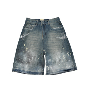 アメリカンスタイル GALLERY DEPT ウォッシュ加工 ダメージ加工 5点パンツ ショートパンツ スプラッシュインク リップド 男女同型 トレンドブランド 男女兼用