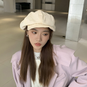 日系慵懒感八角帽女夏秋季新款软檐显脸小云朵贝雷帽水洗棉报童帽