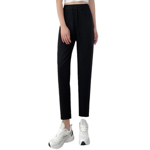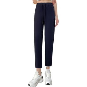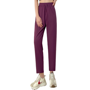 ネットで最も人気のある2025年アイスグラスパンツ!夏用薄手マルチカラーアウターウェア着痩せ9点レディースパンツ620ブラックダークパープル
